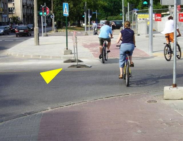 Dlaczego? Jedna z teorii głosi, że popsuł się teodolit. Inna, że zawinił ten, kto niefortunnie ustawił tablicę spychającą i tymczasowy znak (wskazane strzałką) akurat na drodze przejazdu, więc trzeba było je ominąć.