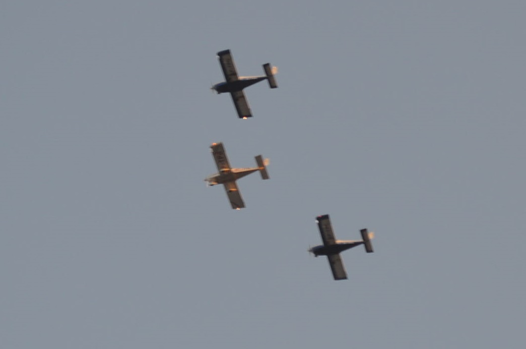Rosnący w ostatnich latach sprzeciw społeczny nie wzbudza refleksji w pilotach. Wręcz przeciwnie, poczynają sobie jeszcze śmielej - np. ćwicząc wielokroć bardziej ryzykowne loty w szyku. Przykładowe zdjęcie z grudnia 2019 r. wykonane nad trasą AK ze Słodowca.