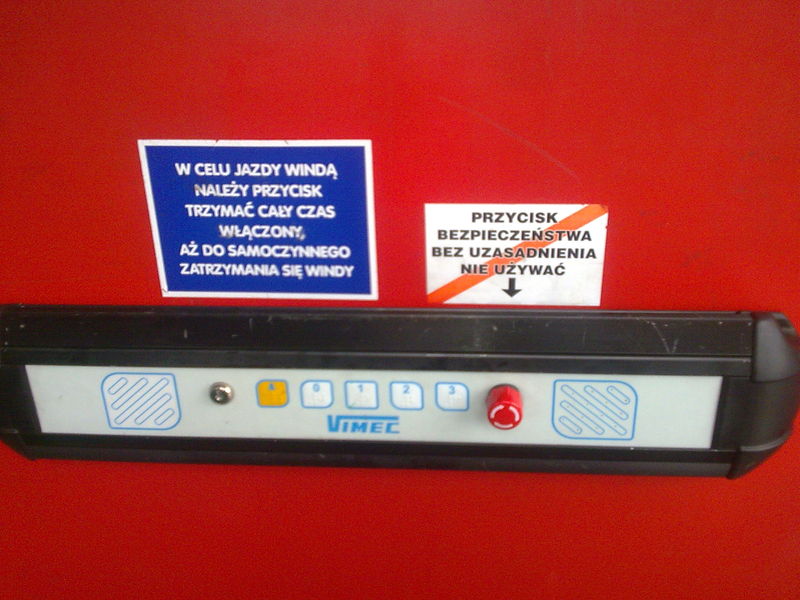 Ponownie ul. Czerniakowska. Przycisków w kabinie jest cała masa, ale właściwie to który trzeba wcisnąć by pojechać w dół?