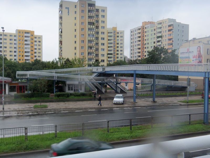 A to już kładka na Radzymińskiej. Dziwnym zbiegiem okoliczności nie zdarzają się awarie lub dewastacje betonowych pochylni. Woda także im nie szkodzi tak jak instalacjom elektrycznym wind. Dlatego takich miejsc nawet nie testowaliśmy. Nie było potrzeby.