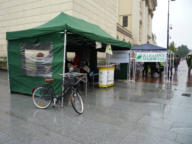 Nagroda główna w kategorii "ruch rowerowy" czeka przed namiotem Zielonego Mazowsza.