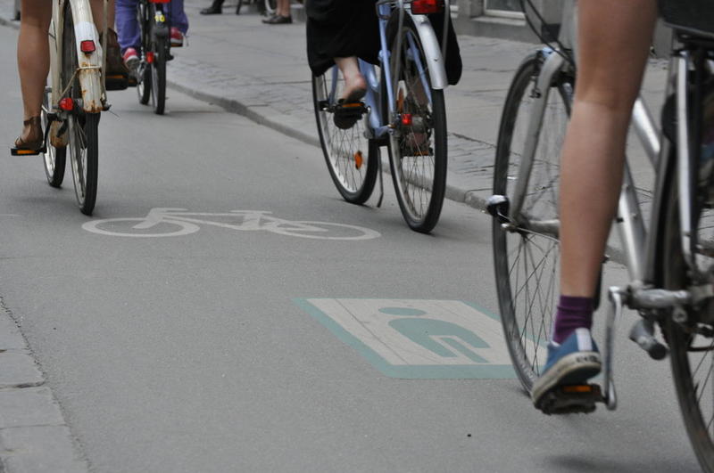 Taki biało-zielony znak oznacza zaś, że jesteśmy na jednej z dróg rowerowych z zielona falą w sygnalizacji. Jeżeli jedziemy taką drogą w godzinach szczytu (z rana w kierunku centrum, po południu w przeciwną stronę), to jadąc z prędkością 20 km/h nie zobaczymy na swojej drodze ani jednego czerwonego światła.