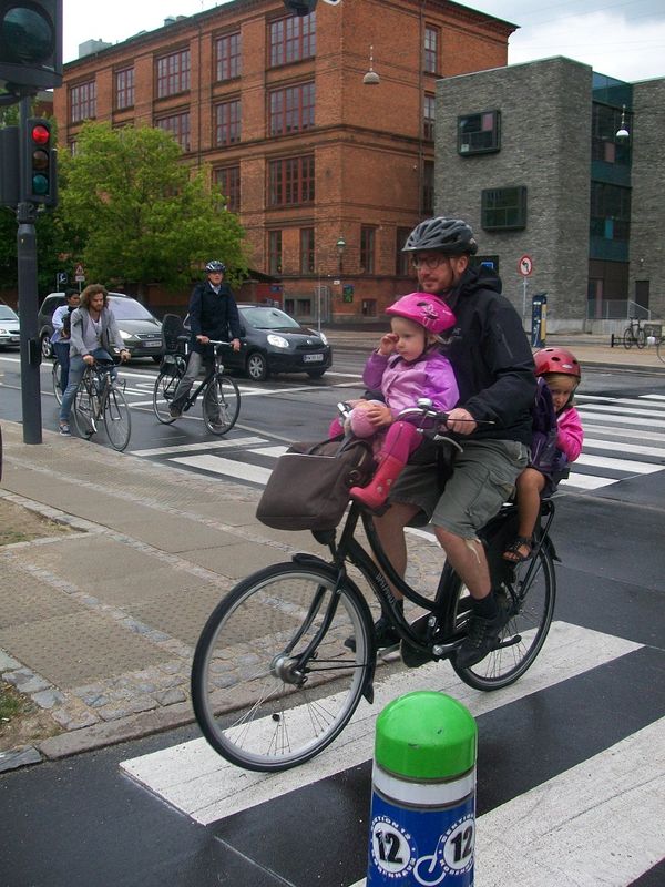 ...dla chcącego nic trudnego. Można wieźć i dwójkę dzieci na zwykłym dwukołowym rowerze miejskim - jedno na siodełku przednim, a drugie na tradycyjnym foteliku rowerowym.