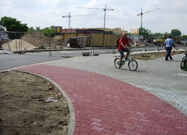 na nowo budowanym fragmencie ścieżki rowerowej na skrzyżowaniu ulic Kasprowicza i Przy Agorze oraz