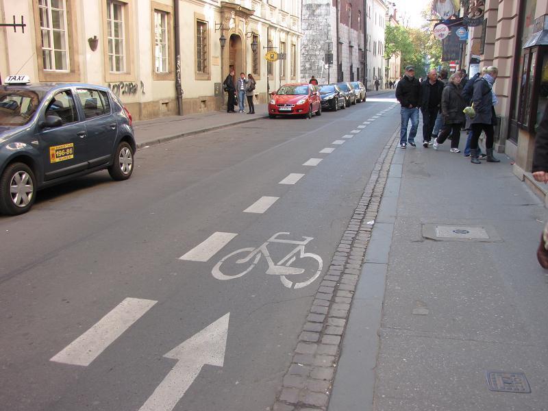 Tu jest jeszcze węziej i dlatego nie ma już wyznaczonego osobnego pasa do jazdy samochodów i do parkowania (ale i tak niektórzy parkują).