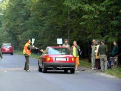 2 października jelenie pakujący się do rezerwatu samochodami...