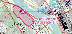 Fragment oficjalnej mapy z konturem obszaru Natura 2000 PLH 140041 Las Bielański.