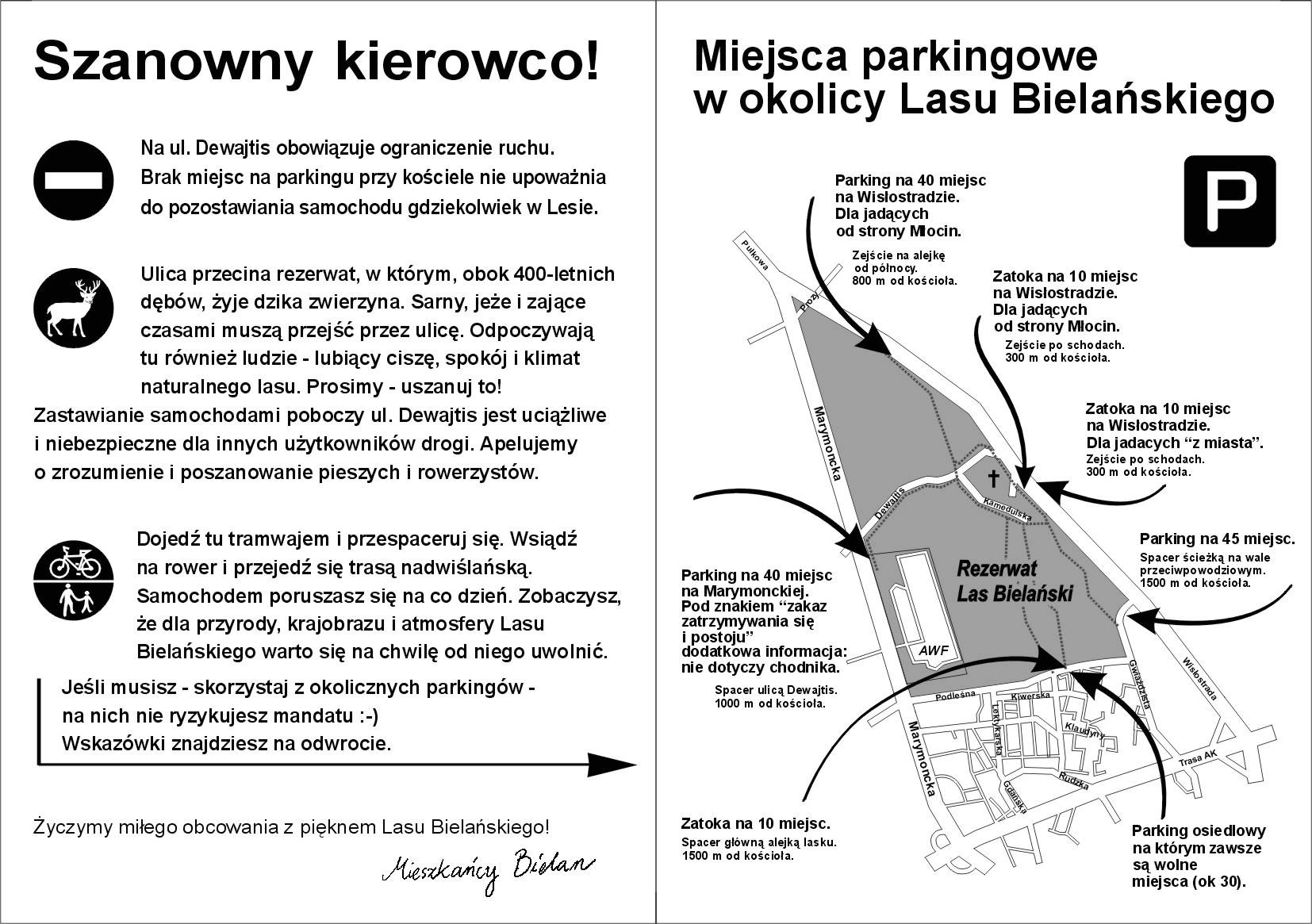 W załączeniu: Trzy przykładowe ulotki dotyczące Lasu Bielańskiego i motoryzacji na ul. Dewajtis JPG, 244 kB
