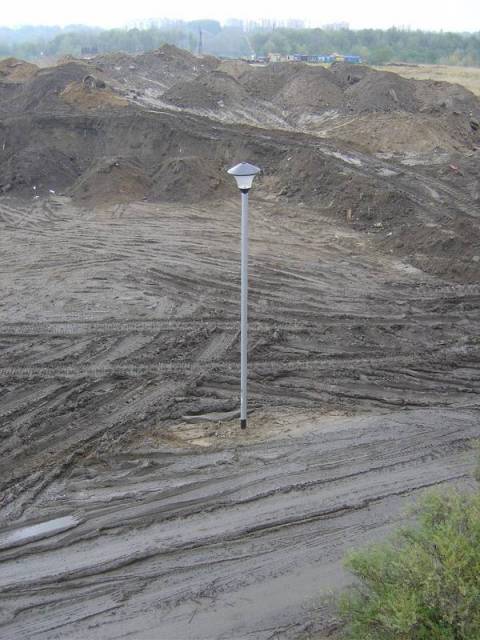 To samo ujęcie z października. Prace zbliżają się do nowych latarń. Obfitość śladów ciężarówek i innego sprzętu budowlanego tuż obok tej latarni nasuwa dość oczywiste wnioski. Mimo to nie pojawiło się żadne zabezpieczenie.