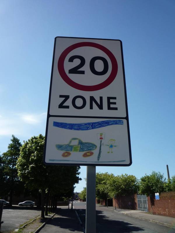 Osiedla mieszkalne i ich okolice (czyli większość miasta) objęte są strefą 20 mil (30 km)/h. Pozwala to ograniczyć hałas, emisję spalin oraz poprawić bezpieczeństwo wszystkich użytkowników ruchu (co podkreślają dołączane do znaków ograniczenia prędkości rysunki przygotowane przez dzieci).