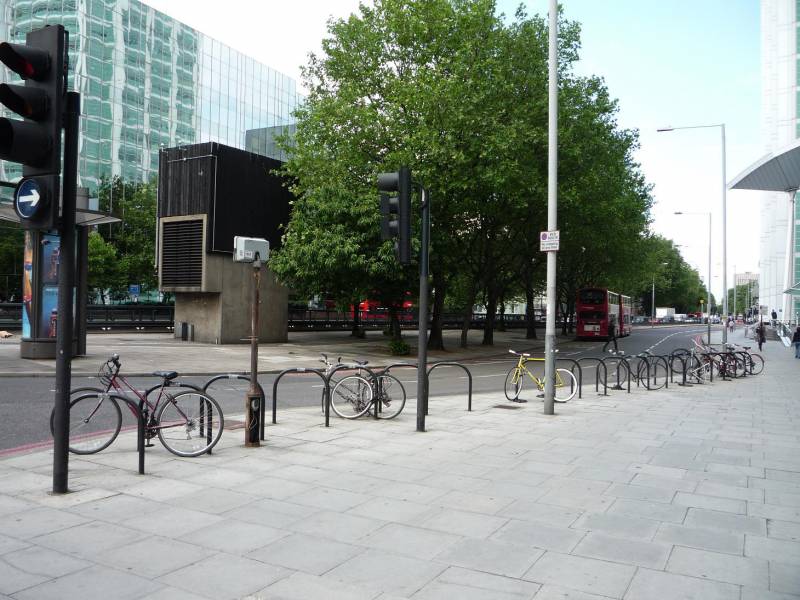 A tu stojaki w pełni zastąpiły słupki (tak jak np. w Wiedniu [zobacz >>>]) - zresztą zawsze lepiej jest skorzystać z rozwiązania, które pełni dwie funkcje niż jedną.