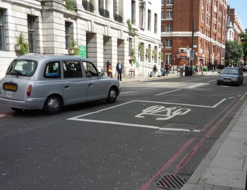 Śluzy rowerowe dostępne są również na jezdniach bez wydzielonych pasów dla rowerów.