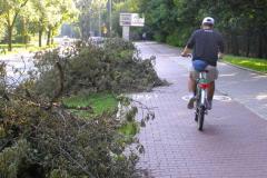 Próbując je ominąć pomyślałam czy w ZOM nie wiedzą, że gałęzie nie muszą schnąć jak siano i można je zabrać od razu? Albo przynajmniej składować nie utrudniając poruszania się po drodze? I w czym rowerzysta jest gorszy od pieszego lub kierowcy? Dlaczego gałęzie nie wystają ponad metr na jezdnie lub na chodnik tylko właśnie na ścieżkę? Czyżby ktoś porównał szerokość samochodu, pieszego i roweru i wyszło, że rower najwęższy to się jakoś zmieści?