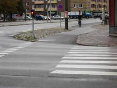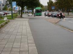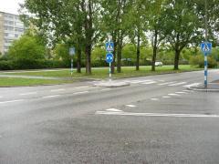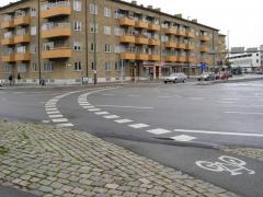 Przejazd dla rowerów - zwraca uwagę usytuowanie przycisku dla rowerzystów na oddzielnym słupku z dala od jezdni. Dzięki temu rowerzysta może wcisnąć przycisk i oczekiwać na zielone światło nie zsiadając z roweru.