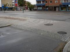 Wyniesione przejście dla pieszych spełniające jednocześnie funkcję progu zwalniającego.
