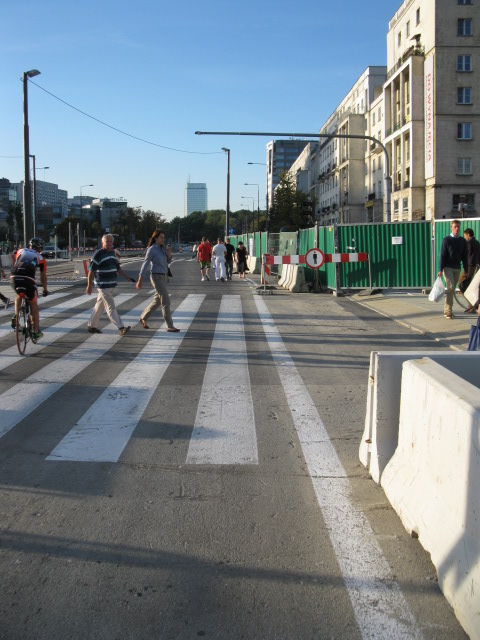 Piesi pomimo zakazów korzystają z tego fragmentu ulicy, aby przejść na przystanek tramwajowy lub z powrotem.