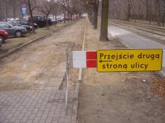 Szkoda, że jak zwykle jedyne, co drogowcy mają do zaoferowania pieszym, to taka tablica, w dodatku ustawiona na granicy robót, a nie z wyprzedzeniem. A gdyby tak na tych parę dni usunąć parkowanie z równoległego chodnika? Nie mieści się w głowie? [zobacz >>>] [zobacz >>>]