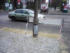 Przy wjeździe na AWF udało się raz jeszcze wcelować chodnikem w pionową przeszkodę - tym razem w latarnię.