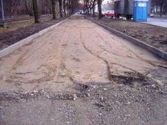 Między Szpitalem a ul.Dewajtis przygotowano koryto, w połowie wypełnione już solidną podbudową z kruszywa. O jakość nawierzchni na prostym odcinku możemy być raczej spokojni.