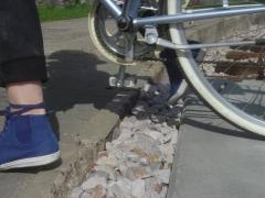 Teraz jednak na przecięciu istniejącego chodnika z torami zieją cztery wyrwy szerokie na 20-30 cm i głębokie na 5-6 cm.