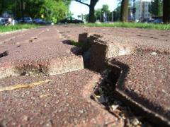 Postuluję, aby wśród nich znalazła się jak najszybciej ścieżka przy ul. Marymonckiej na odcinku Podleśna – AWF. Na skutek wad wykonawczych już od chwili powstania wymaga ona non stop wyrównywania i uzupełniania ubytków. Załączam zdjęcia, które dobrze oddają jej obecny (a właściwie permanentny) stan. Fatalnych warunków dopełnia zastosowanie kostki fazowanej i co gorsza układanej bez przeplotu (zakładkowania) krawędzi równoległych do osi. Powstające przez to ciągłe, równoległe spoiny mają zwiększoną tendencję do rozsuwania i tworzenia coraz głębszego rowku, który zaburza prowadzenie roweru. Ściąganie koła w taką koleinę może w skrajnych przypadkach spowolnić manewr skrętu lub doprowadzić do utraty panowania nad rowerem i wypadku, szczególnie przy cieńszych oponach. Zastąpienie kostki asfaltem poprawi komfort i bezpieczeństwo w sposób trwały, bez wieloletnich nakładów na ciągłą konserwację o znikomej skuteczności.