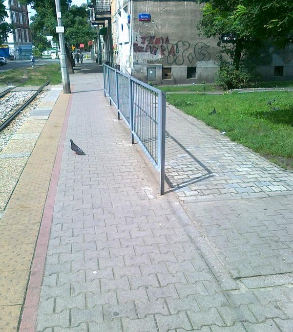 Dla równowagi poszukajmy czegoś pozytywnego. Przecież mogło być gorzej. Wzorem przystanku Czynszowa 01, gdzie ogrodzenie oddziela chodnik od... chodnika [zobacz >>>], także tutaj można było rozgraniczyć strefy wpływów nie tylko wzdłużnym krawężnikiem, ale poprowadzić po jego linii barierkę...