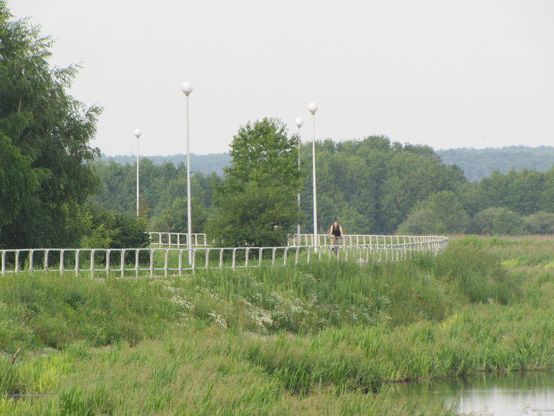 Niestety, Lublin podobnie jak Warszawa [zobacz >>>] cierpi na nadmiar środków finansowych. Żeby zużyć budżet na ścieżki, a przy okazji choć trochę pogorszyć bezpieczeństwo rowerzystów [zobacz >>>], buduje kilometry płotów. Na zdjęciu zachodni brzeg Zalewu.