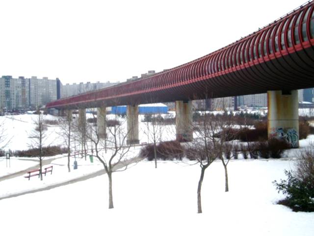 Praskie metro na peryferiach wyjeżdża na powierzchnię ziemi, a czasem nawet sporo ponad nią. Na zdjęciu odcinek linii B Lužiny - Hůrka.