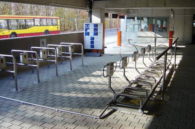 Stojaki w garażu na Młocinach również zauważamy i pochwalamy, jednak znaczna odległość od stacji obarcza je istotną wadą i nie należy rezygnować z dostawienia kolejnych przy głowicach (nie muszą być obsługiwane kartą miejską).