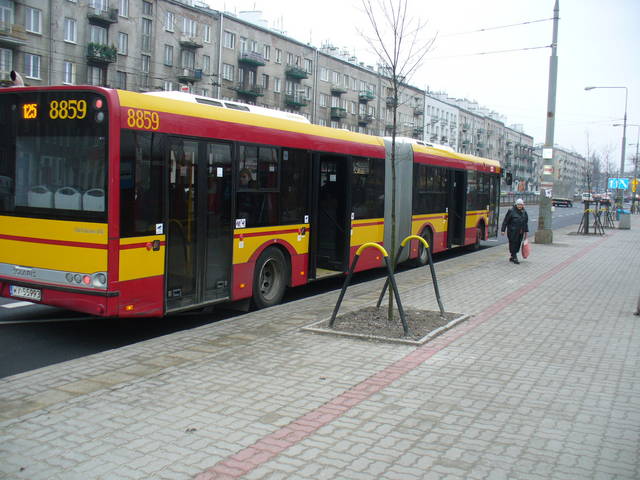 Międzyborska 01 - nowo wybudowany przystanek, przeniesiony po modernizacji skrzyżowania. Mimo świadomości przeznaczenia tego miejsca, w obrębie przystanku wykonano dwie misy i nasadzono drzewa, pozostawiając zbyt wąskie przejście od strony autobusu. Nie ma mowy o wyjechaniu wózkiem po rampie, jeśli na wprost zatrzymają się drzwi autobusu (wobec mnogości typów i modeli oraz kolizji ze słupami jest to więcej niż prawdopodobne). [zobacz >>>] W miejscu, gdzie poprzednio znajdował się ten przystanek, nie było na całej jego długości żadnych drzew, więc te dwa widoczne na fotografii można było nasadzić właśnie tam.