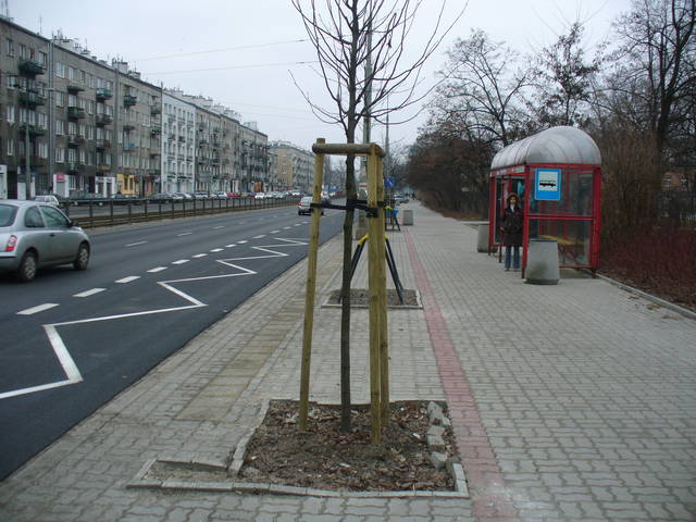 Zbliżenie na misę na przystanku Międzyborska 01, uwagę zwraca tragiczna jakość prac brukarskich oraz wykonanie nie wiadomo czemu służącej odnogi - potykacza, który prawie do zera zwęża przejście i stanowi utrudnienie szczególnie dla niepełnosprawnych.