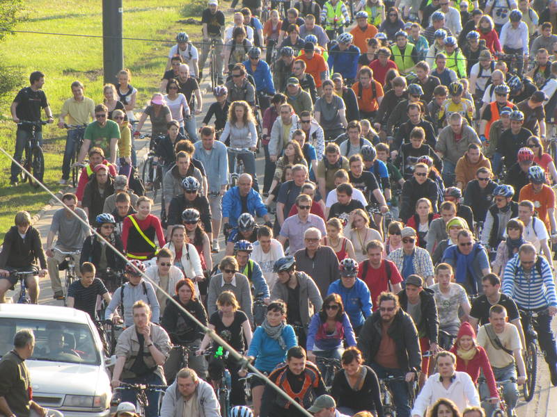 Dlatego rowerzyści, którzy wyruszyli z placu Zamkowego, utknęli w korku.