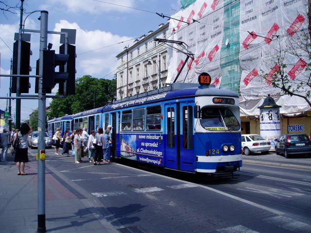 Przystanek wiedeński na ul. Lubicz w Krakowie, prowadzącej też komunikację autobusową.