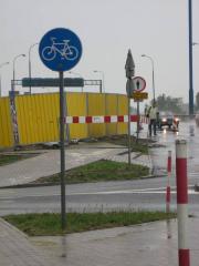 Efekt - rowerzyści przedzierają się przez teren budowy, objeżdżając płot półmetrową opaską jezdni.
