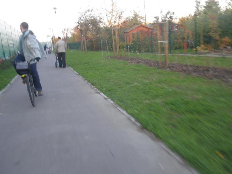 Brak chodnika przy drodze dla rowerów pomiędzy węzłem Młociny a Marymoncką.