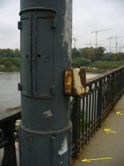 Pragnę zauważyć, że podczas ostatniego remontu, kiedy zamknięto dla ruchu tę przeprawę, nie dokonano konserwacji barierek i poręczy. Co gorsza, nie dbając zupełnie o zabytkowy charakter tego obiektu, wylano masę betonową na chodnikach bez odpowiedniego zabezpieczenia chociażby dolnej części. Ozdobne, kute balustrady gniją i korodują, zanieczyszczając dodatkowo nową nawierzchnię, co pogarsza estetykę obiektu i daje wrażenie zaniedbania.