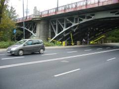 3/ proszę o naprawienie dezorganizacji ruchu na wjeździe na drogę techniczną pod most. Jest ona trwale przegrodzona szlabanem i nie musi mieć wjazdu i wyjazdu z wysepką dla jednego przejazdu w roku ekipy technicznej albo strażaków, kosztem bezpieczeństwa i wygody dziesiątek osób przejeżdżających tędy na rowerze w ciągu godziny. Nie ma powodu do przerywania ciągłości szlaku, ponadto przy przyjętej organizacji rowerzysta musi albo zsiąść, albo poruszać się pod prąd, jeśli jedzie w kierunku Mostu Syreny