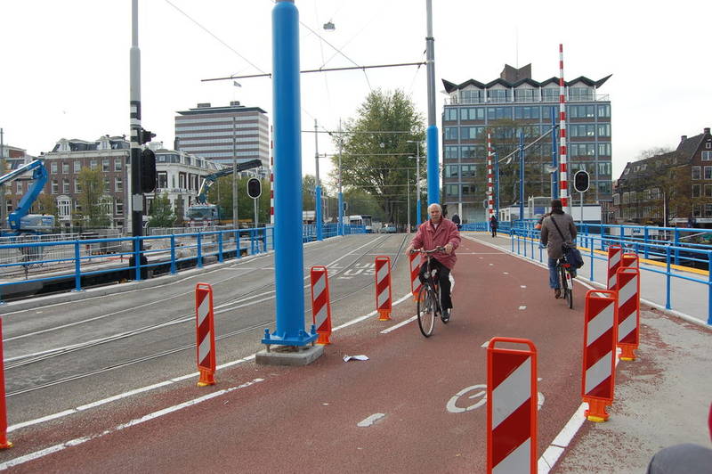 W Amsterdamie, na tymczasowych mostach znajdziemy także torowiska, drogi rowerowe i chodniki, a ruch samochodów prywatnych jest mocno ograniczony. No i ta prowizorka wygląda też nieco inaczej niż nasz most Syreny, czy wiadukt nad stacją Dworzec Gdański ;-)
