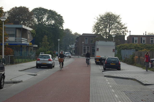Na nas jednak największe wrażenie zrobiła ulica rowerowa w Zutphen. Centralna część ulicy jest wyasfaltowana - zauważono bowiem oczywisty fakt, że rowerzyści chętniej jeżdżą asfaltem niż po kostce. A projektant chciał, by rowery jeździły tu środkiem jezdni. Jest to bowiem ulica rowerowa - główna trasa dojazdu rowerami z dzielnic mieszkaniowych do centrum.