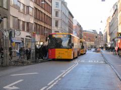 W Kopenhadze od lat obowiązuje moratorium na rozbudowę układu drogowego. To jednak nie wystarczy - żeby zapewnić zrównoważony rozwój transportu, w wielu przypadkach trzeba także zwężać i zamykać już istniejące ulice. Dzisiaj zajmiemy się przykładem Nørrebrogade (czyli: Ulicy Mostu Północnego), stanowiącej przedłużenie drogi nr 211 z Frederikssund i północno-zachodni wlot do śródmieścia Kopenhagi. W 2008 r. na próbę na trzy miesiące przyblokowano różnymi sprytnymi rozwiązaniami ruch samochodów na tej ulicy. Ponieważ większość mieszkańców uznała wprowadzone innowacje za zmiany na lepsze (a dokładniej: 67% było za, 24% przeciw, 9% nie miało zdania) - zmiany utrzymano na stałe. W tym fotoreportażu postaramy się pokazać na czym one polegały.