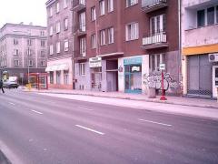 A oto kolejna nowa zatoka, w której w dzień zatrzymują się autobusy linii 505 - niezwykle często, bo co 15 minut w godzinach szczytu i co 20 poza nim, a w nocy autobusy linii N37 - aż co pół godziny. Widać, że dzięki nowej zatoce miejsca dla pieszych jest o połowę mniej, niż w dalszej części ulicy.