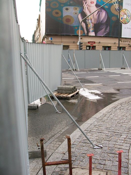Tymczasem po drugiej stronie płotu pozostało jeszcze dużo miejsca, które można by oddać pieszym, aby mogli przejść wzdłuż Traktu Królewskiego nie pokonując świateł.