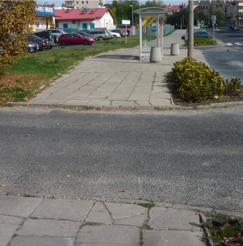 Pomimo przebudowy sąsiadujących chodników przy ulicy Nugat, odcinek na którym znajduje się przystanek autobusowy, pozostawał oddzielony od reszty dwoma parami archaicznych, wysokich krawężników z każdej strony.