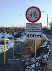 W lutym zakaz ruchu pieszych zastąpiono zakazem ruchu rowerów.