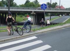 O sprawie ruchu rowerowego przy estakadach bielańskich podczas remontu pisaliśmy wielokrotnie [zobacz >>>] [zobacz >>>]. Alarmowaliśmy o pierwszym (tylko formalnym) zamknięciu traktu nadwiślańskiego [zobacz >>>]. Niedopuszczalne zamiary jego całkowitego zamknięcia (wbrew zaleceniom projektu) zmusiły nas do wystąpienia ze skargą do Biura Drogownictwa i Komunikacji oraz wnioskiem do Inżyniera Ruchu o uwzględnienie potrzeb społeczności lokalnej i transportu rowerowego w organizacji ruchu przy estakadach podczas ich remontu [zobacz >>>].