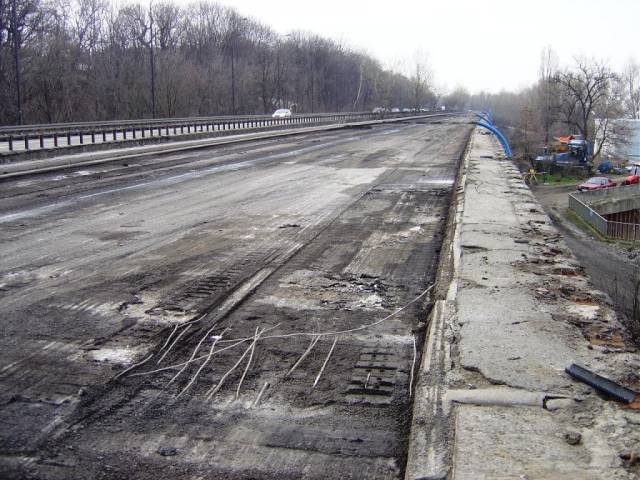 Na początek usunięto latarnie, bariery i nawierzchnię.