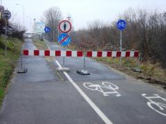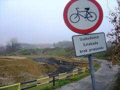 Kiedy zdezorientowany rowerzysta czy pieszy cofnie się do pierwszej tablicy i spróbuje podążać dalej, natrafi wkrótce na taki widok.