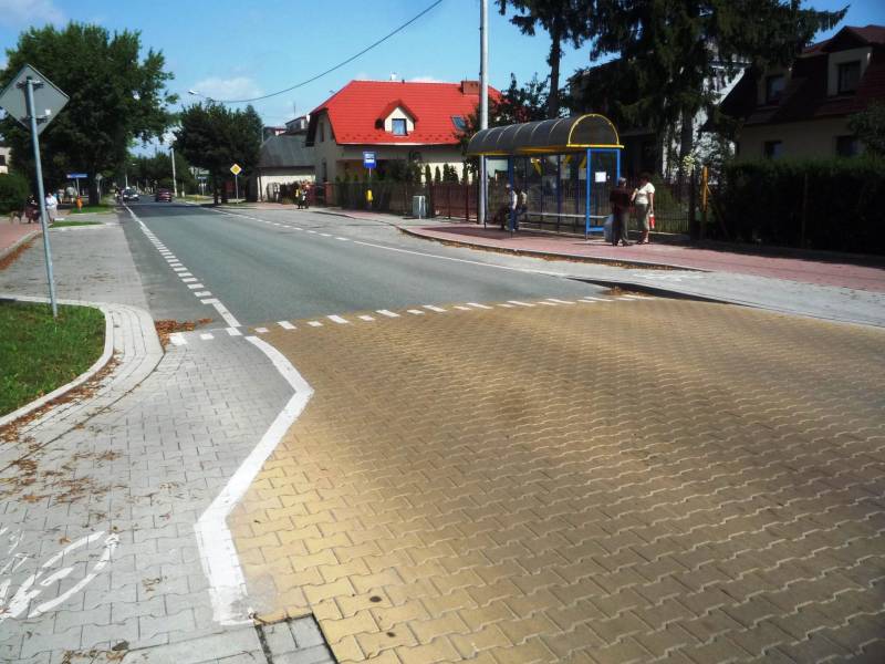 Fizyczne środki uspokojenia ruchu zastosowano na ulicy Kazimierskiej, mimo że prowadzi nią droga wojewódzka nr 824. Właśnie na tej uczęszczanej trasie są one szczególnie potrzebne. Jak widać na filmie poniżej - autobusy pokonują wyniesioną tarczę skrzyżowania bez problemów.