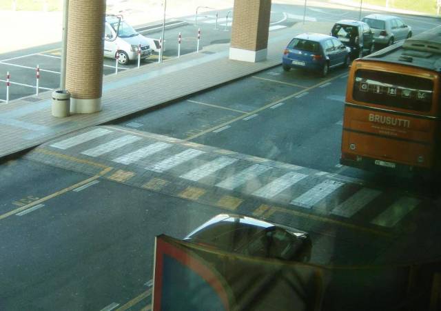 To samo przejście widziane z góry. Pasażer w drodze do hali odpraw ma wystarczająco dużo na głowie, aby go jeszcze absorbować krawężnikami, nieprawdaż? Spostrzegawczy czytelnik dostrzeże też przejawy troski o niewidomych i niedowidzących.
