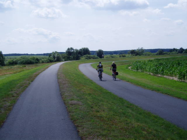 Dwujezdniowa droga rowerowa ;-) Kto woli widoki, jedzie górą, kto osłonę od wiatru i większą szerokość - dołem.
